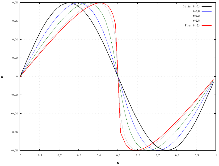 The equation (10) is known for modeling nonlinear wave propagation and shock wave formation. The data points